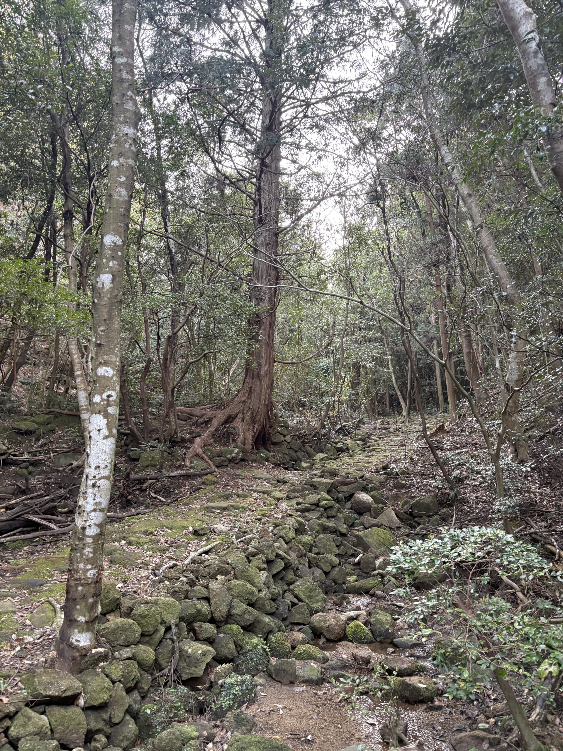 熊野速玉大社から熊野那智大社へ向かう海岸沿いの経路上にありまして、山塊の谷間にある切り通しの区画で、近世の石畳が一部残っています。ニュータウン勝浦と限りなく近いのであまり風情は微妙ですが、ここから入っていくと少し山路もあって熊野古道らしさが見えたりします。
