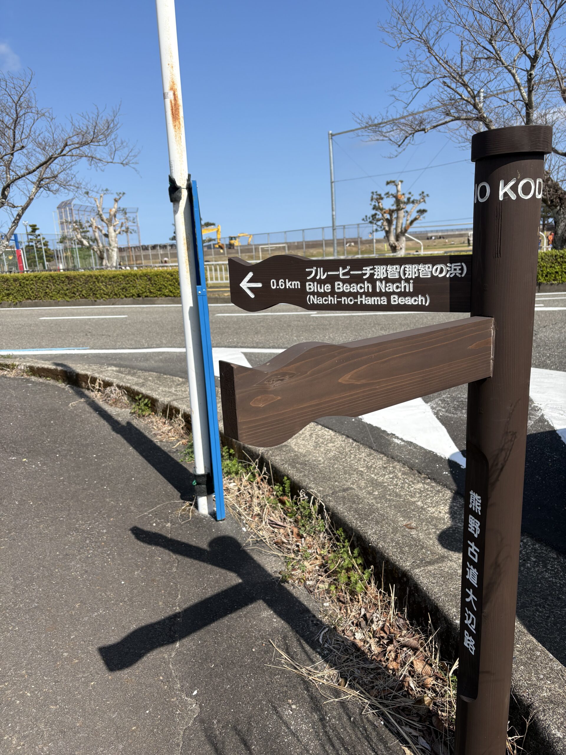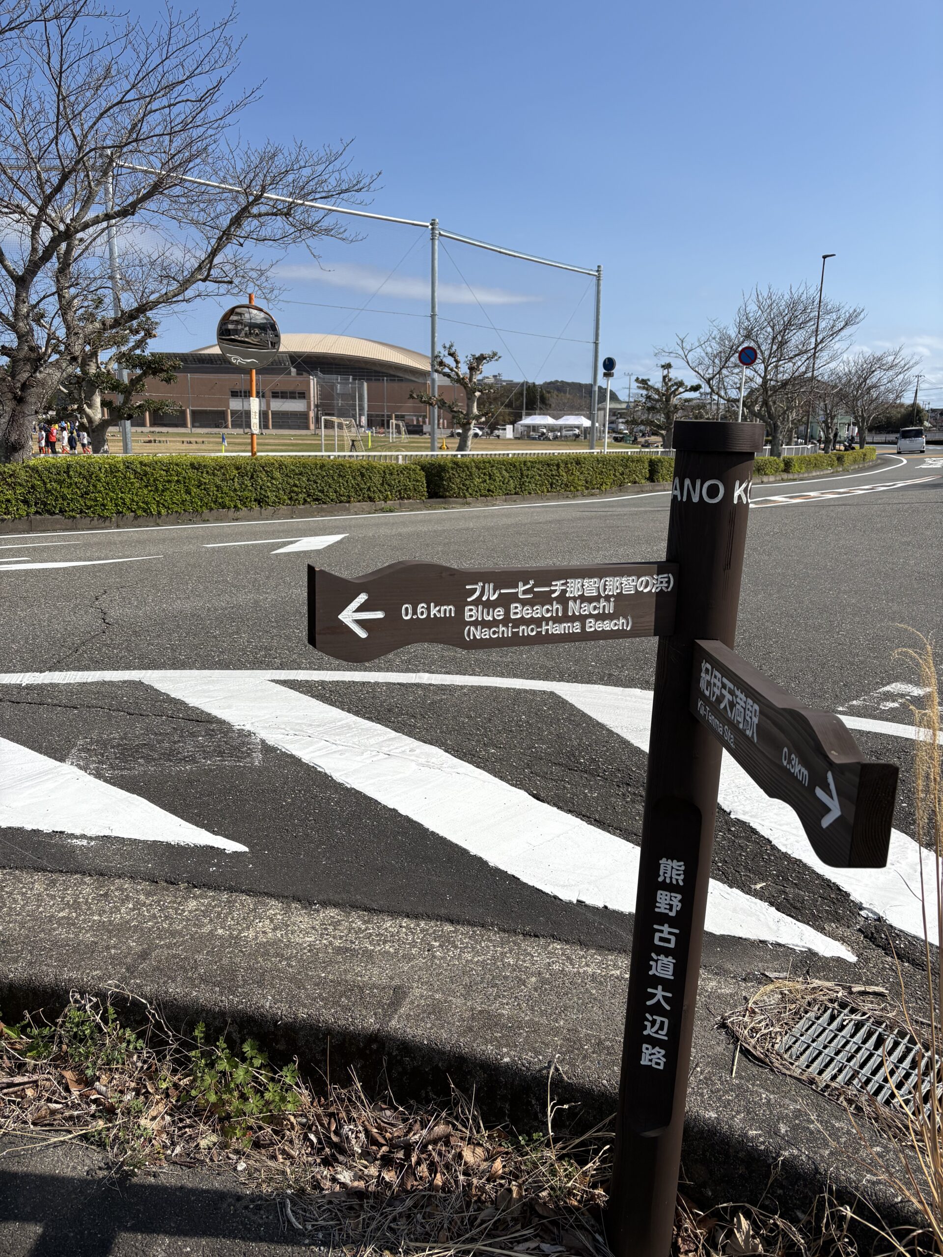 ちょっと行けばブルービーチ那智、戻れば紀伊天満駅のここは、木戸浦グランド前の道です。